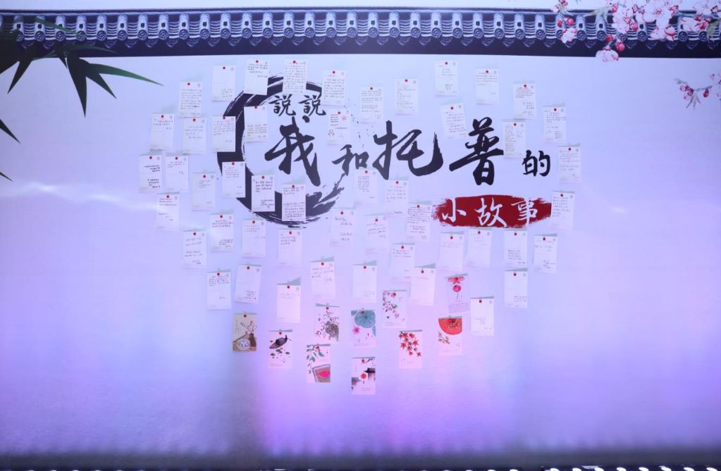 ▲身后的小白墻黏貼著大家與托普之間難忘的記憶瞬間。