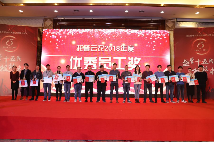 在完成對老員工的頒獎之后,我們對公司的兩位創(chuàng)始人婷總與朱總進(jìn)行了特別表彰,感謝他們開創(chuàng)了托普公司,感謝他們十余年來的辛勤付出,嘔心瀝血,才有了如今的托普云農(nóng)!