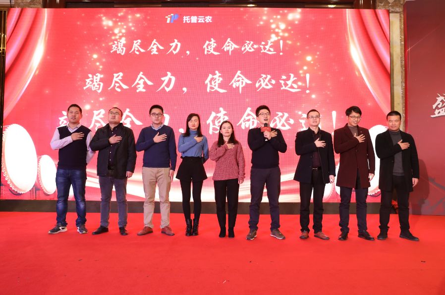在陳董事長慷慨激昂的發(fā)言之后,托普云農(nóng)銷售團(tuán)隊以及信息化團(tuán)隊上臺進(jìn)行誓師儀式,他們元氣滿滿,氣宇軒昂,對來年的任務(wù)整裝待發(fā),胸有成竹!