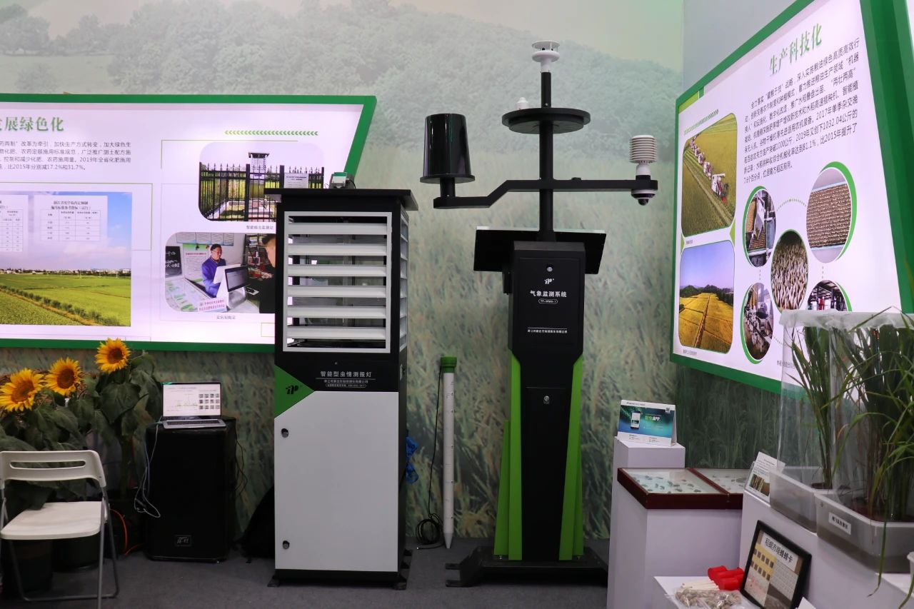 在展位一角,擺放著幾臺顏色鮮艷的“大家伙”,它們就是托普云農(nóng)研發(fā)的針對病蟲害測報的智能裝備。