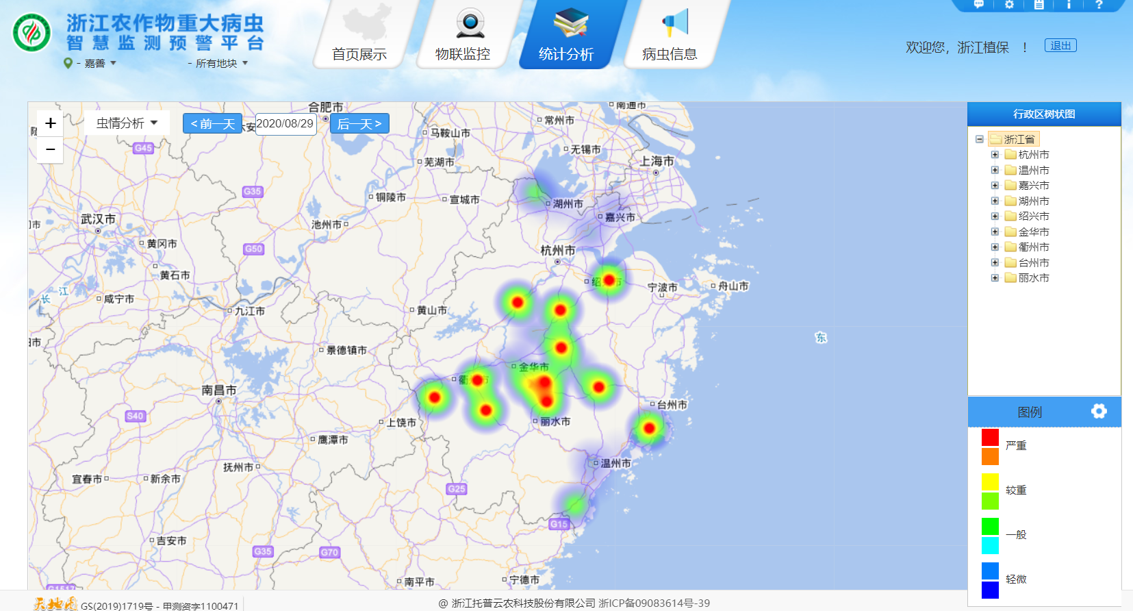 浙江農(nóng)作物重大病蟲害智慧監(jiān)測預(yù)警平臺蟲情區(qū)域分析圖