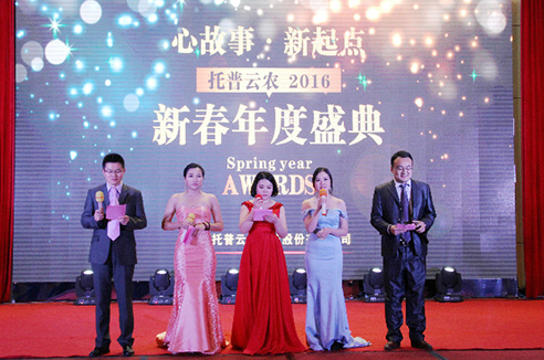羊隨新風辭舊歲,金猴獻瑞迎新春。2016年1月30日,新起點、新起航;托普云農2015年度總結表彰大會暨2016迎新春聯歡會在杭州海外海納川大酒店隆重舉行。300余名托普家人共聚一堂,回顧這一年所取得的成績,規劃2016年新的奮斗目標,共同迎接歡樂幸福的農歷新年。