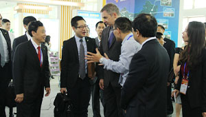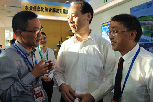 農(nóng)交會(huì)期間,農(nóng)業(yè)部余欣榮副部長、農(nóng)業(yè)部市場與經(jīng)濟(jì)信息司王小兵副司長一行蒞臨托普展區(qū)參觀指導(dǎo)。余副部長表示,農(nóng)業(yè)物聯(lián)網(wǎng)技術(shù)應(yīng)用除了現(xiàn)有的系統(tǒng)及硬件以外,還要與射頻技術(shù)緊密結(jié)合,提高物聯(lián)網(wǎng)的科技含量。屈冬玉副部長和斯洛文尼亞副總理一行也蒞臨托普展區(qū),并與陳渝陽總經(jīng)理親切交談。雙方就農(nóng)業(yè)物聯(lián)網(wǎng)的研發(fā)推廣以及落地應(yīng)用等問題進(jìn)行交流。