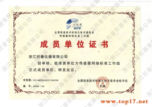 2014年5月托普儀器成為國家傳感器網(wǎng)絡(luò)標(biāo)準(zhǔn)工作組正式成員