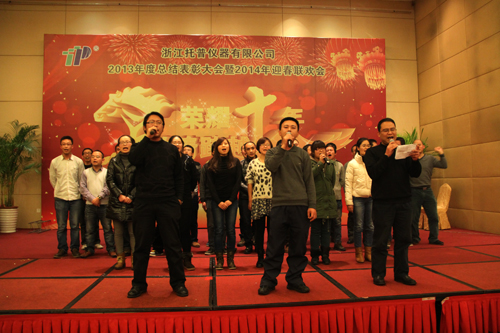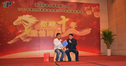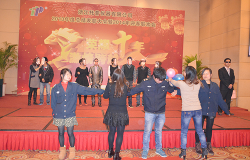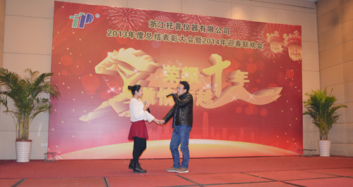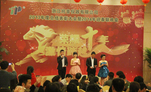飛雪送蛇歸,駿馬迎春來。2014年1月24日六點整,在一片歡樂祥和的氣氛里,“榮耀十年、激情跨越”之托普儀器2013年年終晚會緩緩拉開序幕。托普儀器260余人的大家庭齊聚一堂,慶祝托普十年華誕,慶祝一年的工作成果,慶祝除舊迎新。晚會伊始,托普儀器陳渝陽總經理上臺為本次晚會致開幕詞,為即將到來的馬年向所有托普家人致以新春的問候。