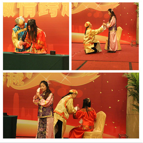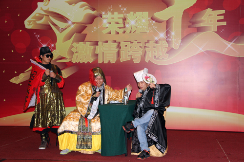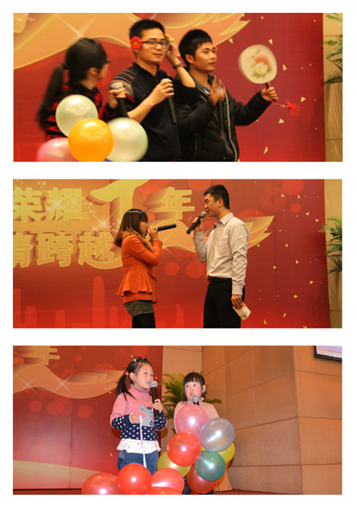 除此之外,為慶祝托普十年華誕,各部門紛紛獻上準備多日的節目。金曲、小品異彩紛呈,戲曲、舞蹈驚喜連連。期間,公司特別安排了四輪抽獎,特等獎“海爾電冰箱”最終由市場部同事梁倩蓮摘得,陳總親自上臺頒獎,并為活潑爽朗的小梁送上了新年祝福。從三等獎到特等獎,共有20位幸運的托普家人榮獲大禮。