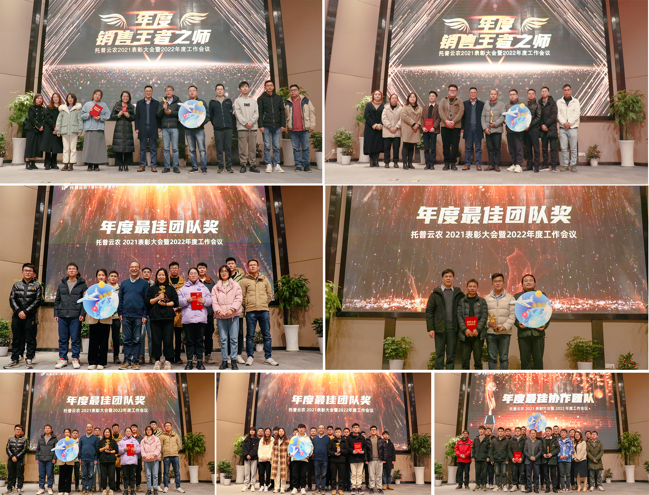 傲人成績的斬獲歸功于每一位托普人的拼搏奮斗。不平凡的一年里,越來越多優秀人才加入托普云農,為夢想而來,為“三農”而來。為增強企業向心力和凝聚力,營造“崇尚先進、學習先進、爭當先進”的濃厚氛圍,托普云農舉行了2021年度表彰儀式,來自總部及子公司的47個團隊與個人摘得“最佳新人”“優秀員工”“銷售精英”“最佳團隊”等多項榮譽。