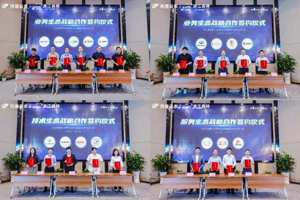 會上,浙江森特還與浙江省農科院、浙江農林大學、中國移動、華數、海康威視等科研院校和企業進行了生態合作伙伴戰略簽約,旨在通過技術創新、資源整合、跨界融合,推動建設融政府、產業、科研、科技、服務等為一體的新型生態體,以多方合力助推數字農業高質量發展。