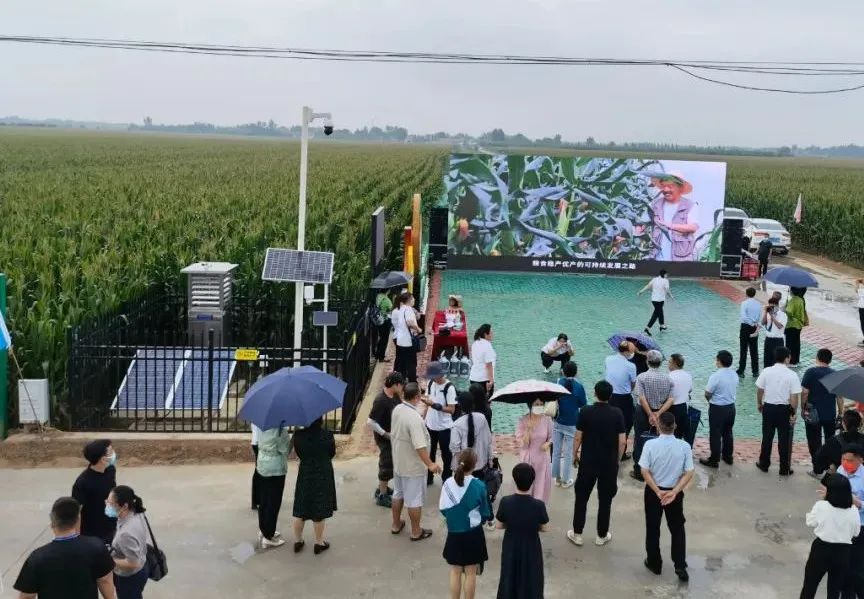 與會代表現場觀摩托普云農支撐建設的“噸半糧”高標準農田核心示范區