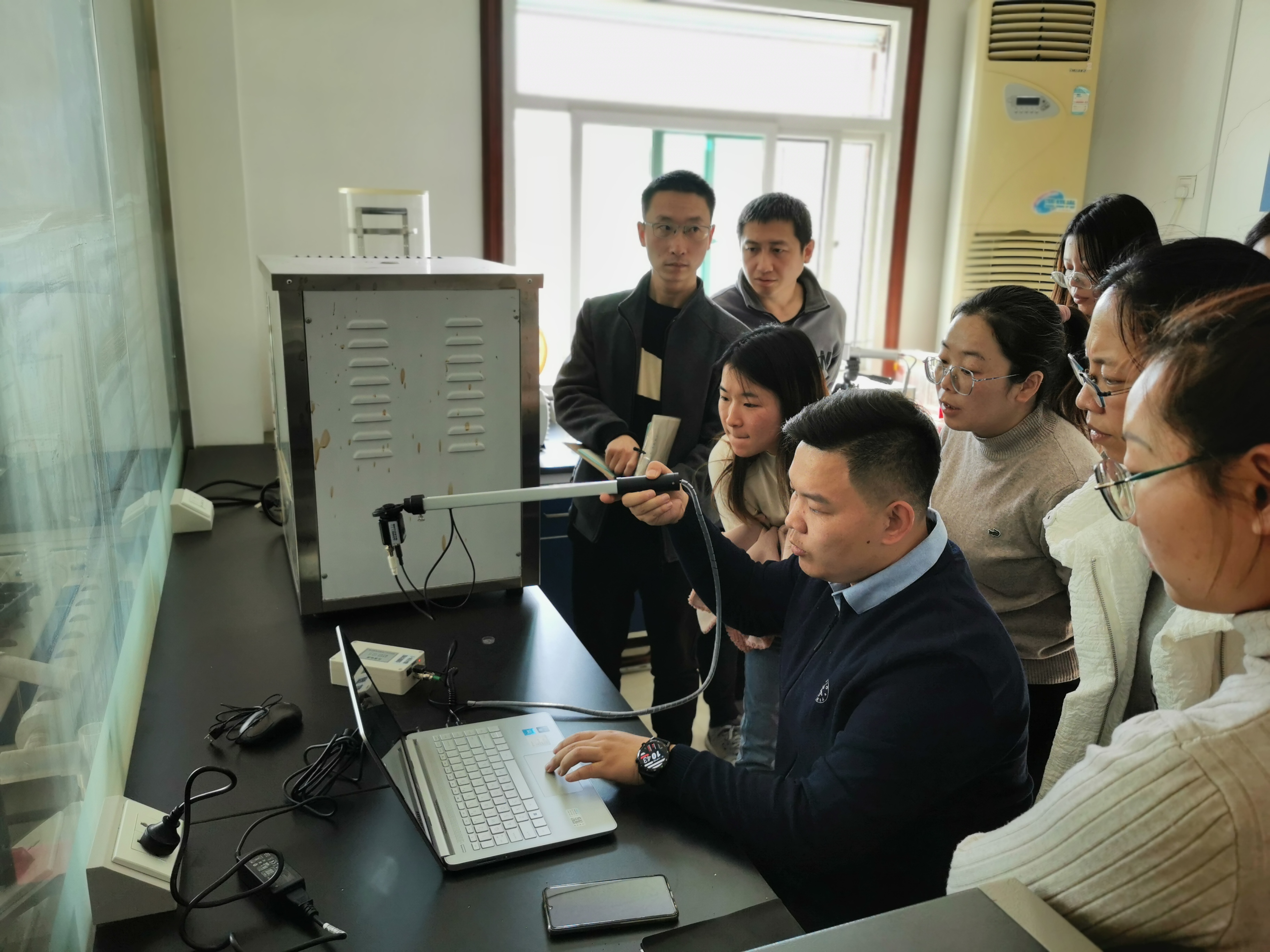 高智能型光合作用的測定儀,致力于解決農業科研工作者測量過程中的痛點。設備可設置單組測量數據時間,長時間測量也可將儀器和傳感器靜置在三腳架上,減少科研人員在烈日下長時間暴曬;電池滿電狀態下的儀器可連續使用8小時,且采集的數據自動保存并生成趨勢曲線圖、對比分析圖,節約了科研人員對已測量數據二次整合的時間,提升科研效率。工作人員介紹完這款產品后,與會嘉賓對光合作用測定儀好評如潮。
