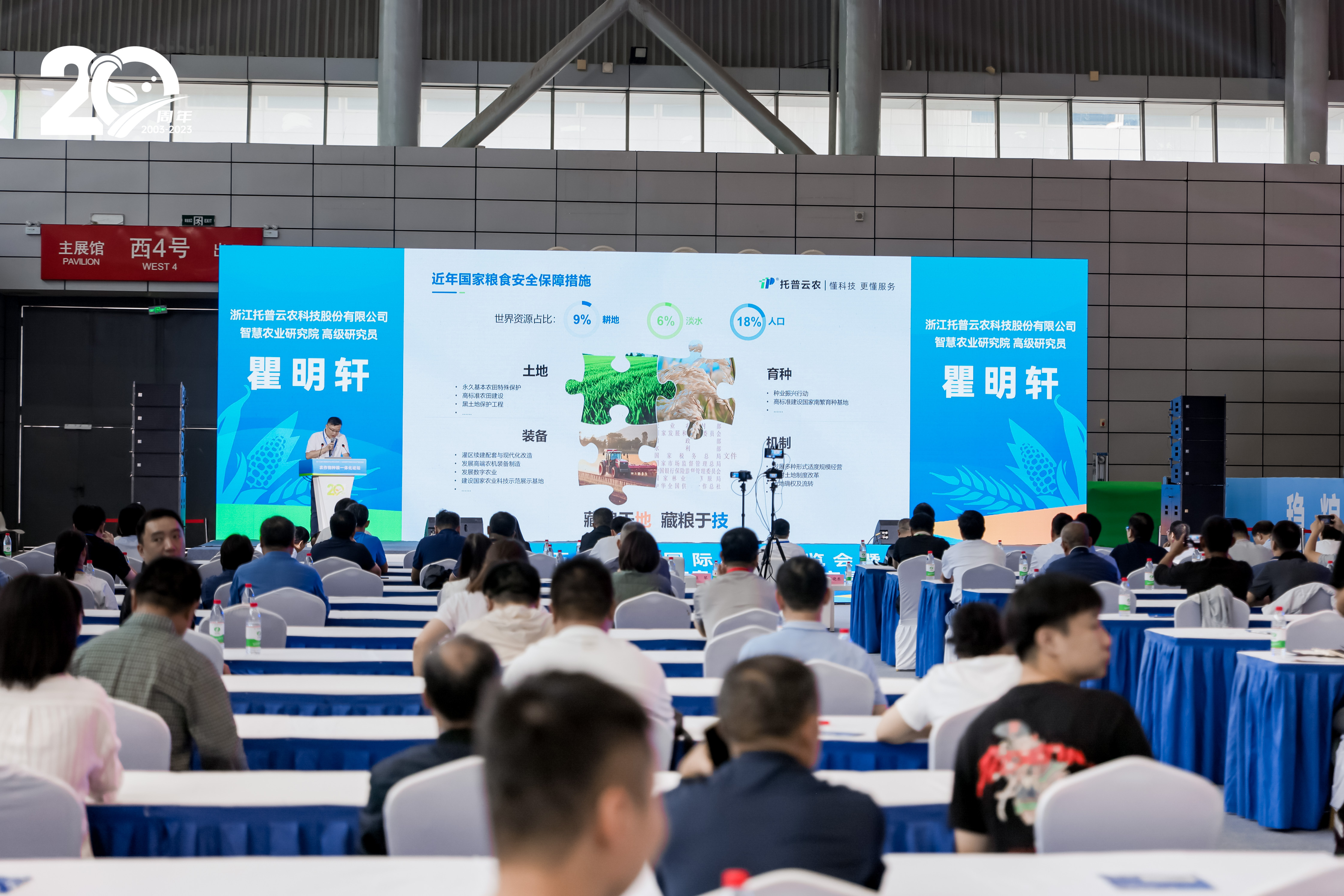 9月24日,以“穩糧保供強根基、聚力振興譜新篇”為主題的第十五屆中國國際種業博覽會暨第二十屆全國種子信息交流與產品交易會在安徽合肥盛大開幕。本屆大會恰逢全國種子雙交會舉辦二十周年,大會涵蓋1場開幕式、1場信息發布會、6場論壇、系列展覽展示等活動,來自全國31個省(區、市)管理部門、行業企業、科研高校和制種基地等代表們齊聚一堂,深入剖析產業,驅動種業創新升級。農業農村部總農藝師曾衍德,安徽省政協副主席馬傳喜,合肥市人民政府副市長王連貴,中國工程院院士、國家農作物品種審定委員會主任萬建民出席開幕式并講話。開幕式由全國農技中心主任魏啟文主持。托普云農應邀參會,并在農作物種糧一體化論壇上作《以數字技術驅動種糧一體化高質量發展》主題報告。