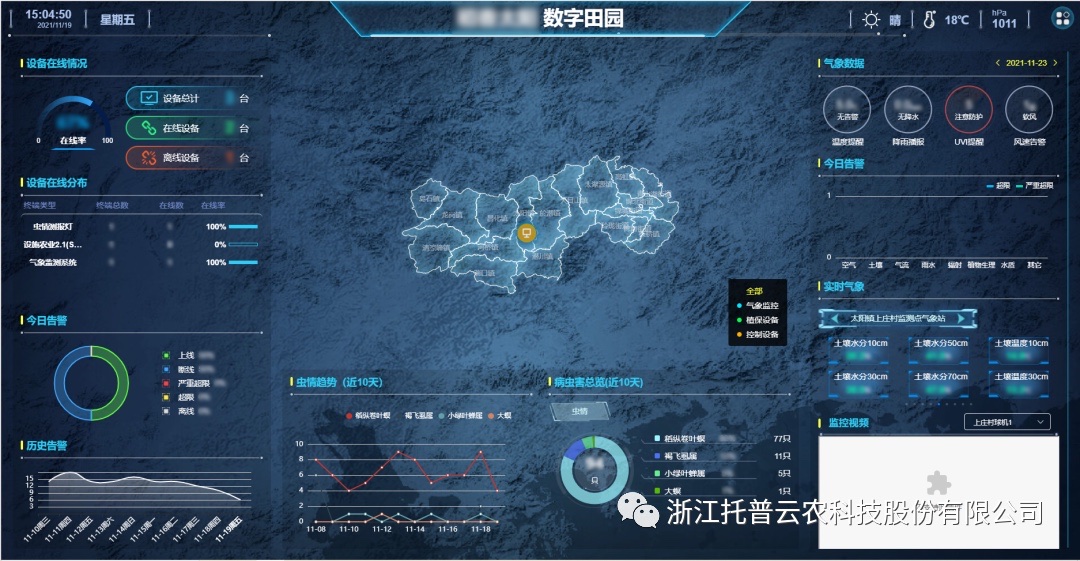 近年來,海鹽縣加快推進高標準農田建設步伐,對通元鎮3000多畝農田進行高標準農田提升建設,聯合托普云農打造農田數字化平臺。圍繞綠色生態防控,構建綠色防控體系,布設綠色殺蟲燈、智能蟲情測報燈等智能裝備,助力農藥減量增效。聚焦農田智能化管護,構建智能病蟲害測報體系,對農業氣象、土壤墑情、病蟲害、作物苗情等數據收集分析,提前預測農作物病蟲害和農業氣象災害,初步實現農業生產中的智能感知、智能指導和科學預測。項目建成后,農田生態環境明顯改善,綠色防控措施升級,農田智能化管護水平全面提升。
