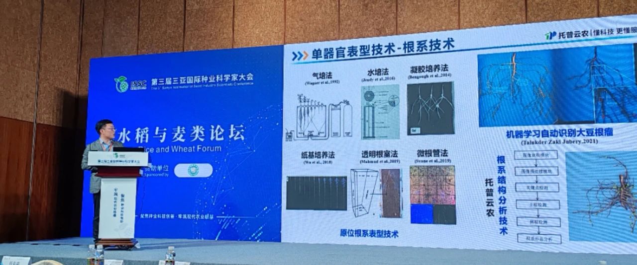 此次會議,中稻—托普數(shù)字農(nóng)業(yè)研究中心、浙江托普云農(nóng)科技股份有限公司(以下簡稱“托普云農(nóng)”)共同參會,托普云農(nóng)在水稻與麥類論壇上作《自動化表型解析技術(shù)在育種的應(yīng)用》主題報告。