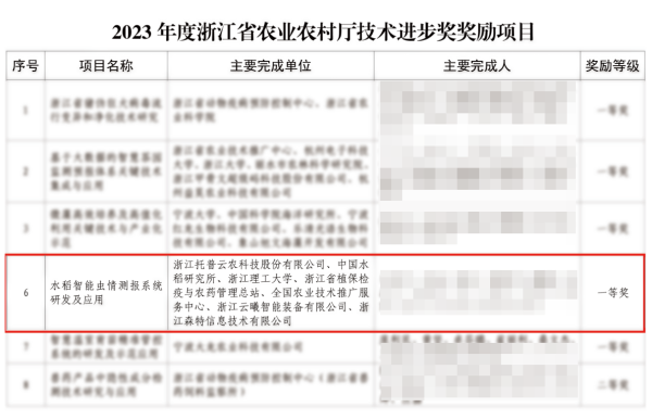 喜訊!托普云農榮獲 2023 年度浙江省科學技術進步獎