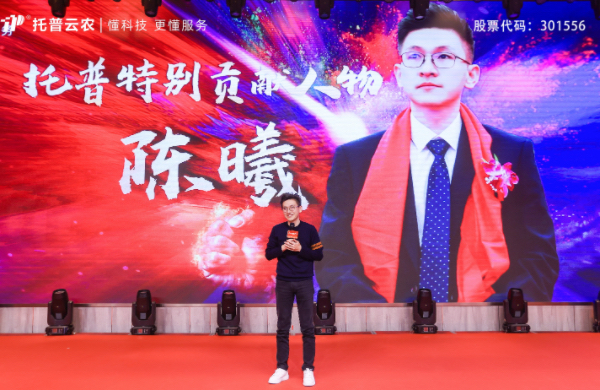 托普云農董事長陳渝陽向全體托普人表達衷心感謝,并向年度優秀獲獎員工及團隊表示熱烈祝賀。