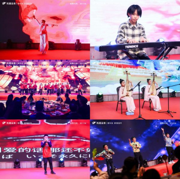 金蛇狂舞春添彩,紫燕翻飛好運來。隨著華燈的璀璨變換,托普云農的年會盛典在熱烈歡騰的氛圍中拉開了帷幕。創意多才的托普人精心準備,為晚會呈現了一場包含舞蹈、演唱、曲藝、小品等多種形式的視聽盛宴,激動人心的趣味抽獎和游戲互動環節更是將年會氣氛推向高潮,尖叫和歡呼貫穿全場。舞臺上的歡聲笑語,臺下的熱烈掌聲,都化作了心底翻涌的幸福與感動,大家舉杯共慶,鼓足干勁,攜手奔向充滿希望的新一年。