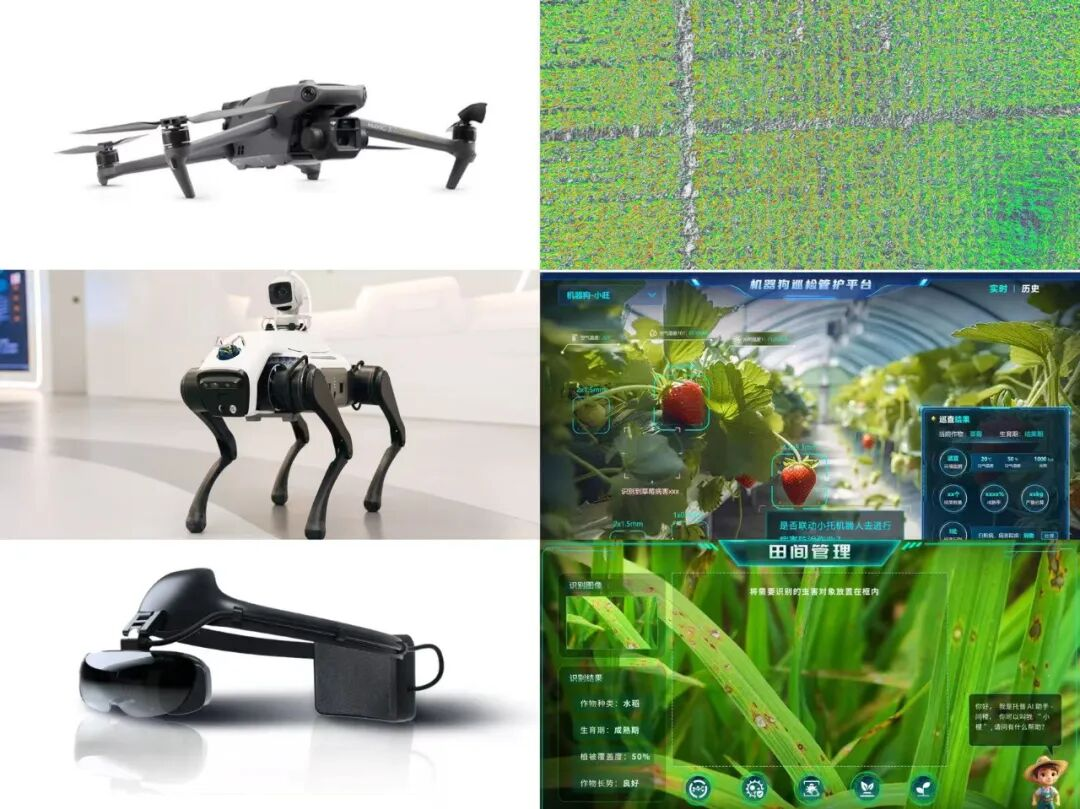 深耕智慧農業十余年,托普云農積極探索和深化 “AI + 農業” 創新應用場景,通過集成創新與組合創新優勢,將自主研發的 AI 智能體“問稷”深度融入無人機、AR 智能眼鏡、田間機器人(狗)等新一代智能終端設備,推動人機協同高效作業,顯著解放人力,提升農業生產效率。