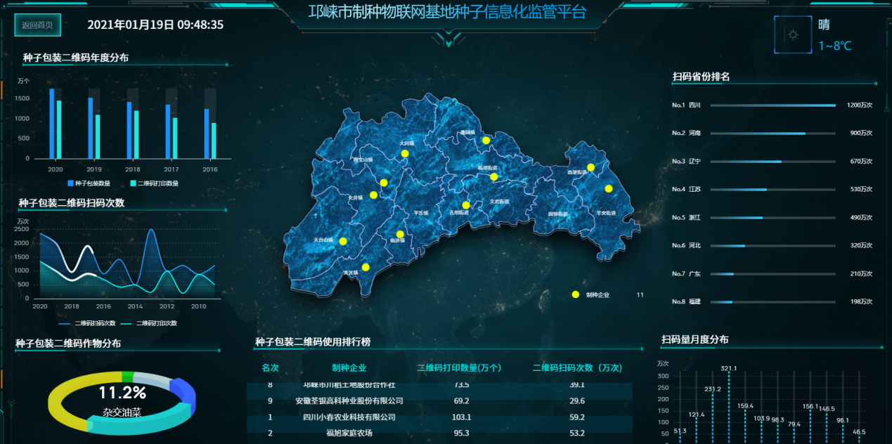 利用信息化平臺嚴格建立種子的監管制度,實現制種、育種、品種推廣過程的可追溯管理,推動種子產業健康發展。目前該平臺共8個模塊,包括基地制種Gis管理、種子投入品監管系統、種子質量溯源管理系統、在線專家咨詢系統、基地VR展示系統、制種保險管理系統、制種基地信息化管理平臺和制種信息化監管平臺。